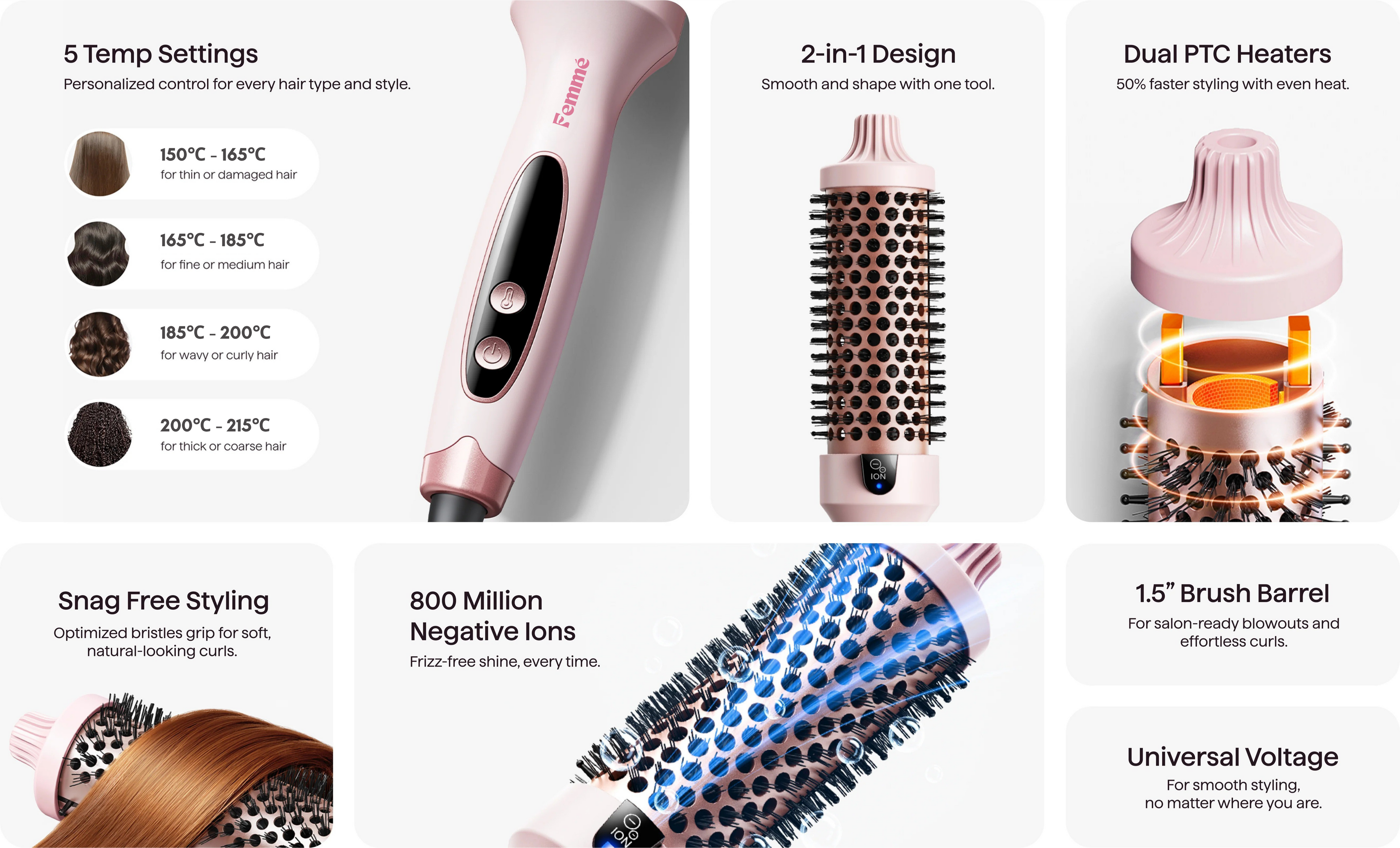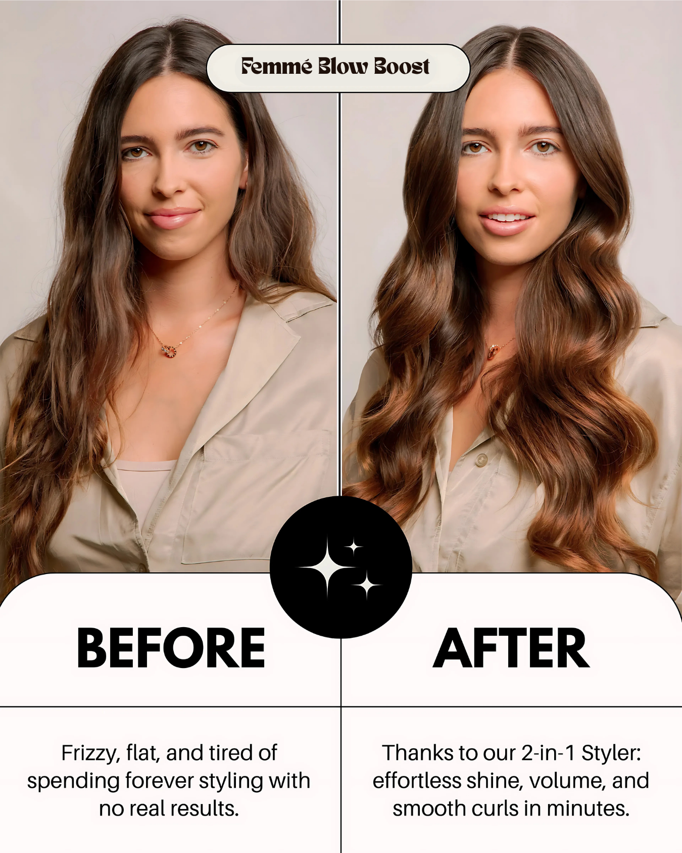 Lift, smooth, and shape in one easy step—designed for volume, shine, and less damage.